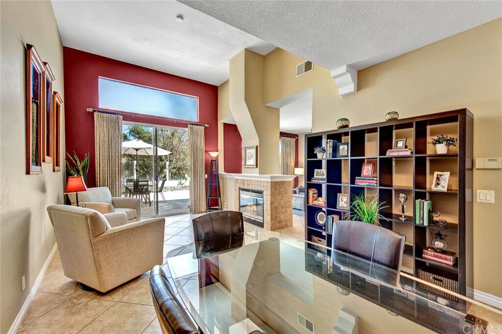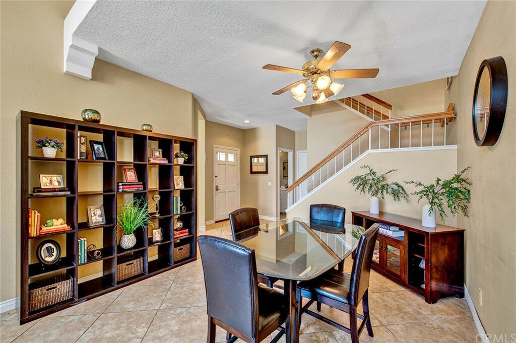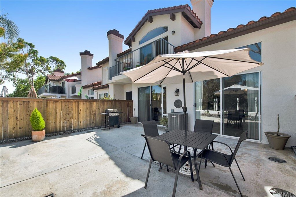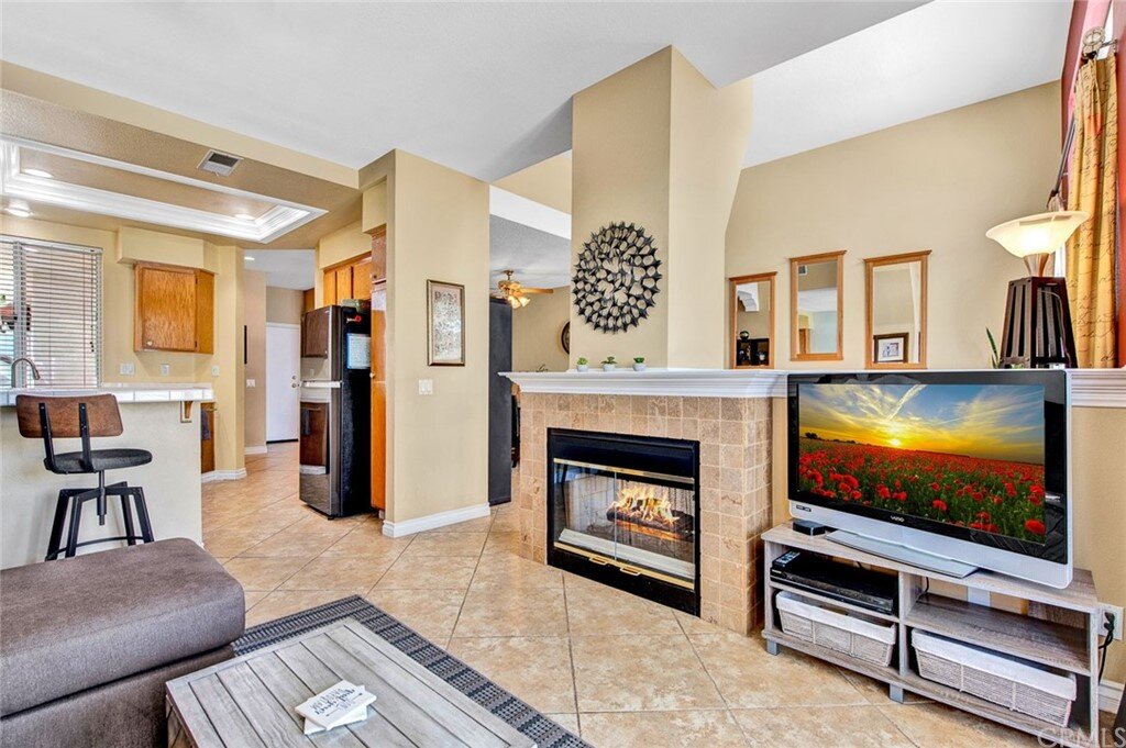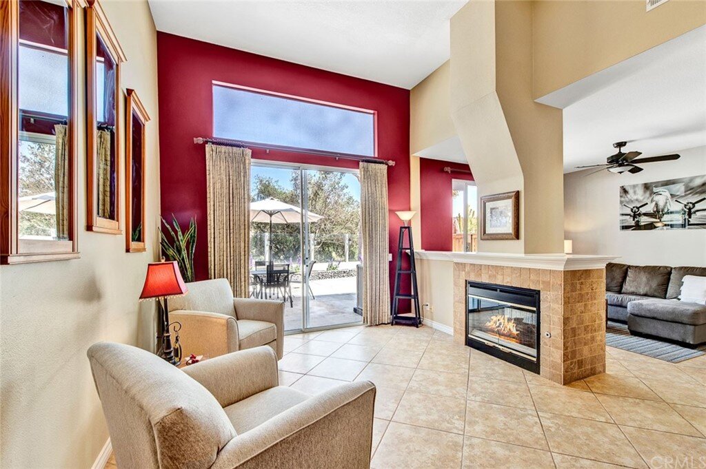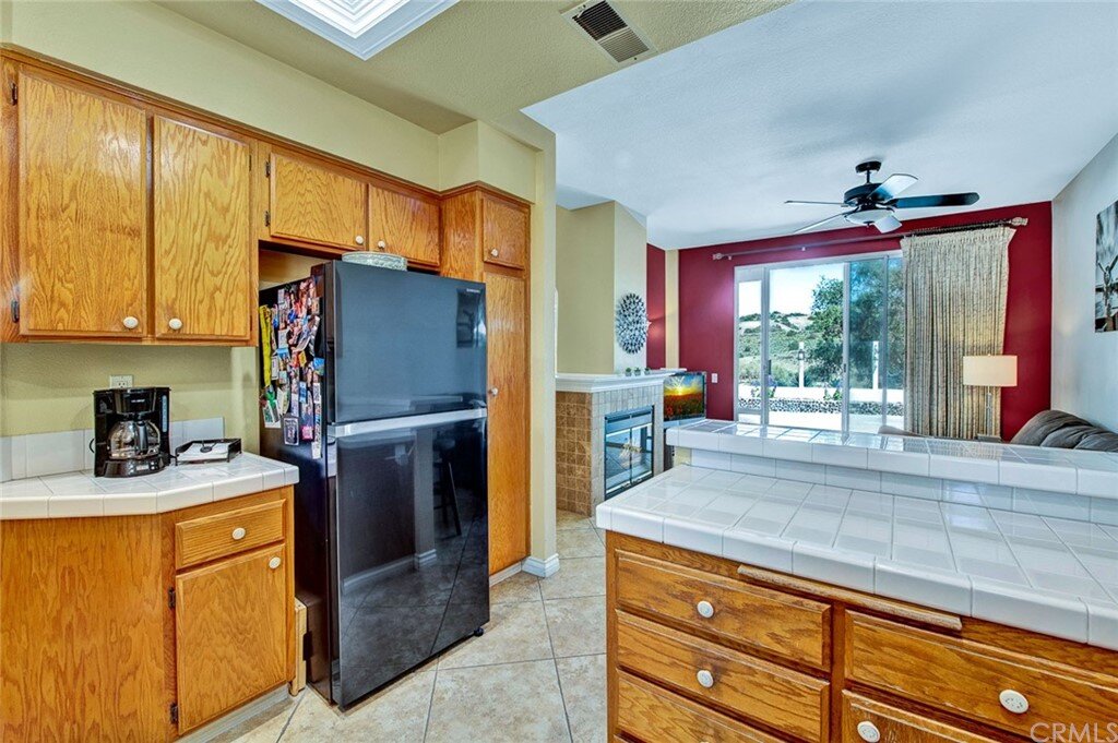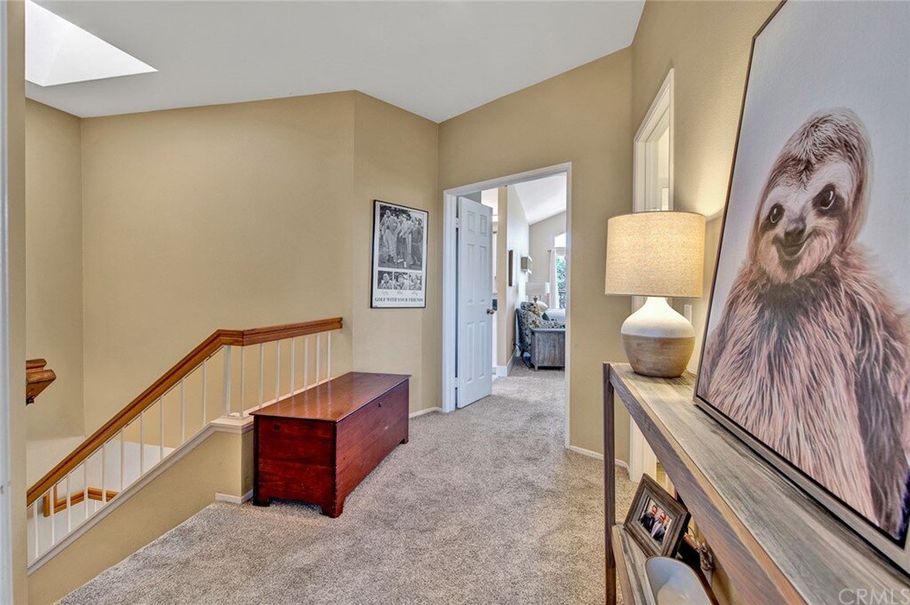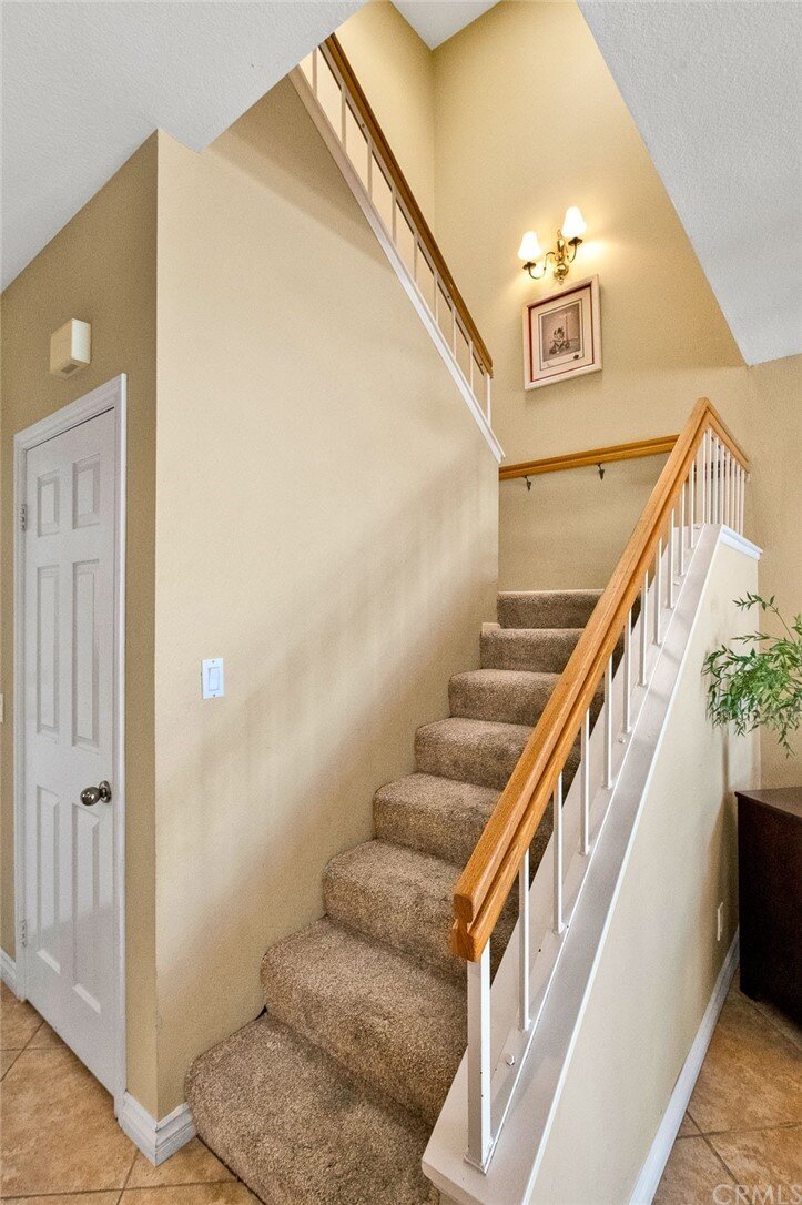 Welcome to the most extensive floor plan in the highly sought-after Candelero Community with incredible views! Upon entering this home, you are met with beautifully maintained large neutral porcelain tile floors expanding throughout the downstairs; the walls are neutral with one accent wall. The vaulted ceilings in the living room make for an open and airy space to relax as you enjoy the view of the hillside and canyon below. A custom tiled dual-sided fireplace can be enjoyed in living and family rooms. Dual sliding glass doors afford a fantastic view from either side of the home. The kitchen provides ample cupboard space, white tile countertops, black stainless steel appliances, and a bar-height counter where you can pull up a stool to enjoy a quick meal. The downstairs half bath shows with white cabinetry and olive-toned paint. The enormous enclosed patio is perfect for entertaining. Enjoy shady evenings BBQing with friends and family. Look out to the panoramic canyon view. Easy to care for concrete with newer side fencing. New in 2022 A/C compressor and coil. 2 car attached garage with laundry and 48 sq. ft. overhead storage. Walk upstairs on the new plush neutral carpet with upgraded padding for extra cushion and pet protection. The large master bedroom amazes with vaulted ceilings, a walk-in closet, and an oversized sliding glass door. Off the master is a quaint balcony overlooking the hillside and canyon. The master bath is newly remodeled and breathtaking, with grey porcelain tile continuing from the floor up the shower wall to the ceiling. An oversized glass frameless shower door provides a beautiful infinity look. With white cabinets, gray quartz counters, and metal hardware. 2 additional spacious bedrooms, a landing, and a newly renovated second bathroom, complete the upstairs space. The plumbing in this home has been rerouted from underneath the slab, so there is no possibility of a slab leak. Also included is a new water heater. Low taxes, no Mello Roos, steps away from 4 miles of wilderness trails, parks, tennis courts, and Tijeras Creek Golf course.