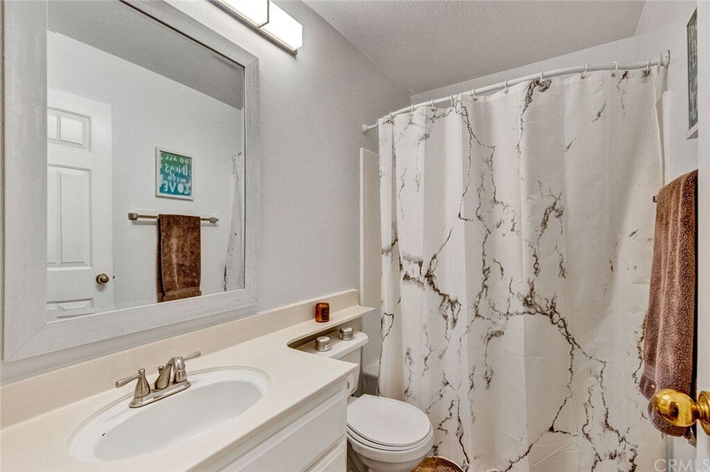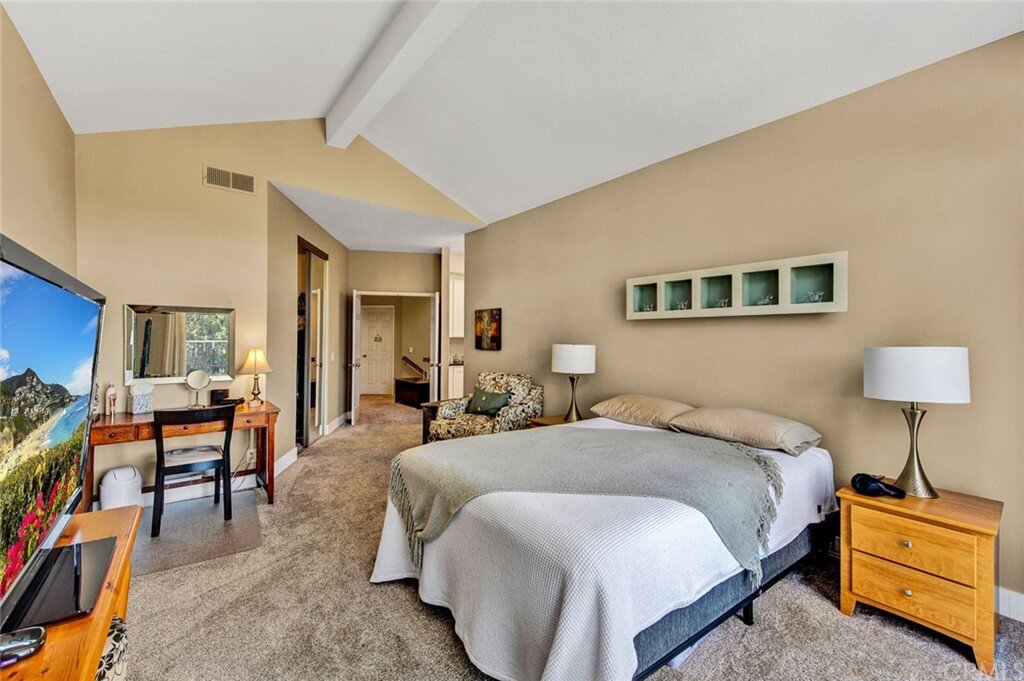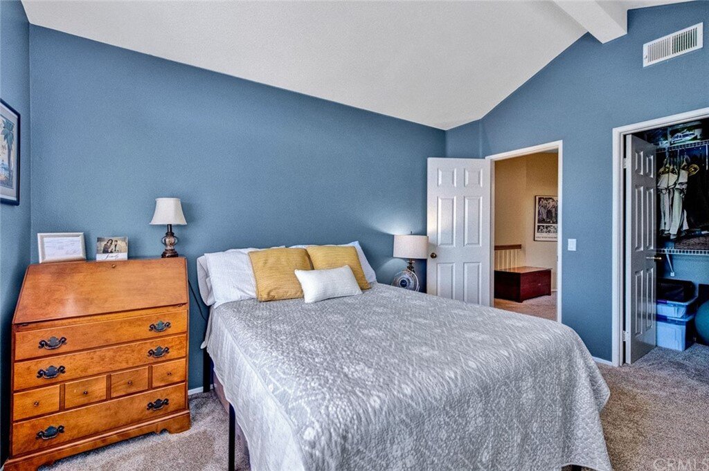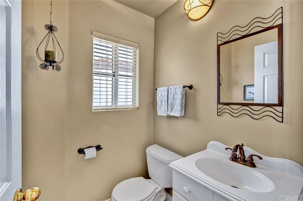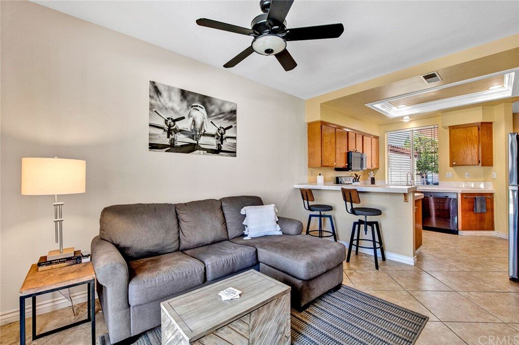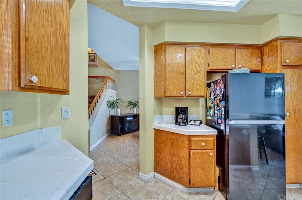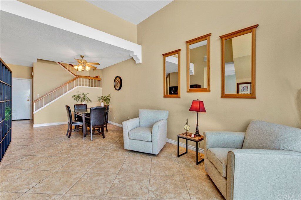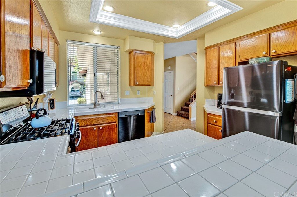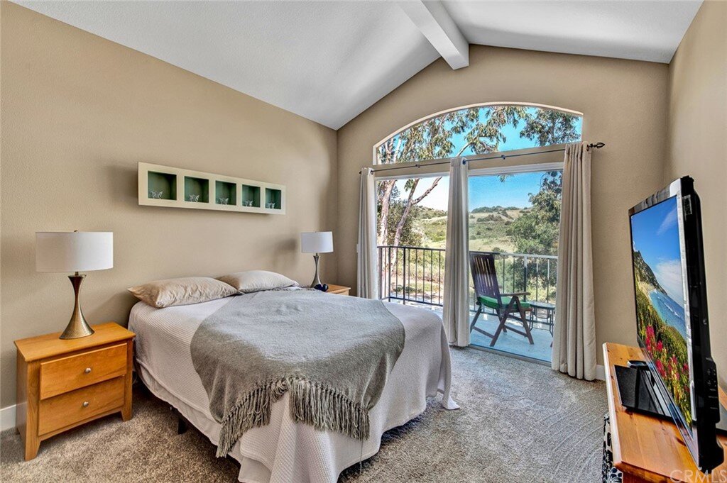 Welcome to the most extensive floor plan in the highly sought-after Candelero Community with incredible views! Upon entering this home, you are met with beautifully maintained large neutral porcelain tile floors expanding throughout the downstairs; the walls are neutral with one accent wall. The vaulted ceilings in the living room make for an open and airy space to relax as you enjoy the view of the hillside and canyon below. A custom tiled dual-sided fireplace can be enjoyed in living and family rooms. Dual sliding glass doors afford a fantastic view from either side of the home. The kitchen provides ample cupboard space, white tile countertops, black stainless steel appliances, and a bar-height counter where you can pull up a stool to enjoy a quick meal. The downstairs half bath shows with white cabinetry and olive-toned paint. The enormous enclosed patio is perfect for entertaining. Enjoy shady evenings BBQing with friends and family. Look out to the panoramic canyon view. Easy to care for concrete with newer side fencing. New in 2022 A/C compressor and coil. 2 car attached garage with laundry and 48 sq. ft. overhead storage. Walk upstairs on the new plush neutral carpet with upgraded padding for extra cushion and pet protection. The large master bedroom amazes with vaulted ceilings, a walk-in closet, and an oversized sliding glass door. Off the master is a quaint balcony overlooking the hillside and canyon. The master bath is newly remodeled and breathtaking, with grey porcelain tile continuing from the floor up the shower wall to the ceiling. An oversized glass frameless shower door provides a beautiful infinity look. With white cabinets, gray quartz counters, and metal hardware. 2 additional spacious bedrooms, a landing, and a newly renovated second bathroom, complete the upstairs space. The plumbing in this home has been rerouted from underneath the slab, so there is no possibility of a slab leak. Also included is a new water heater. Low taxes, no Mello Roos, steps away from 4 miles of wilderness trails, parks, tennis courts, and Tijeras Creek Golf course.